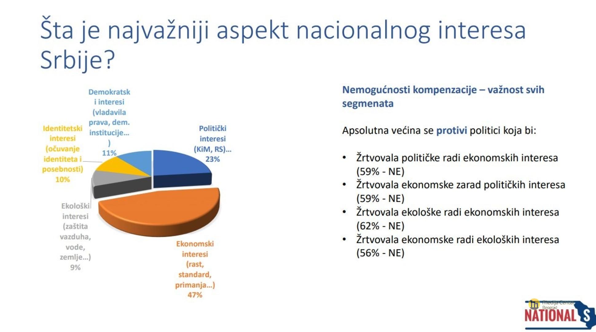 Predstavnici istraživačkog tima će tokom konferencije najpre predstaviti sam projekat i važnost ovog javnomnenjskog istraživanja, a zatim će predstaviti i protumačiti njegove najvažnije rezultate tako što će se usredsrediti na nekoliko glavnih celina: razumevanje nacionalnog interesa kao centralnog koncepta ovog projekta i opšta percepcija građana u vezi sa nacionalnim interesima Srbije; pitanje članstva Srbije u Evropskoj unjii i odnosa u regionu; percepcija građana u vezi sa statusom Kosova i Metohije; načina na koji građani vide mogućnosti međunarodnog prava da bude korišćeno kao sredstvo za legitimizaciju nacionalnih interesa Srbije.